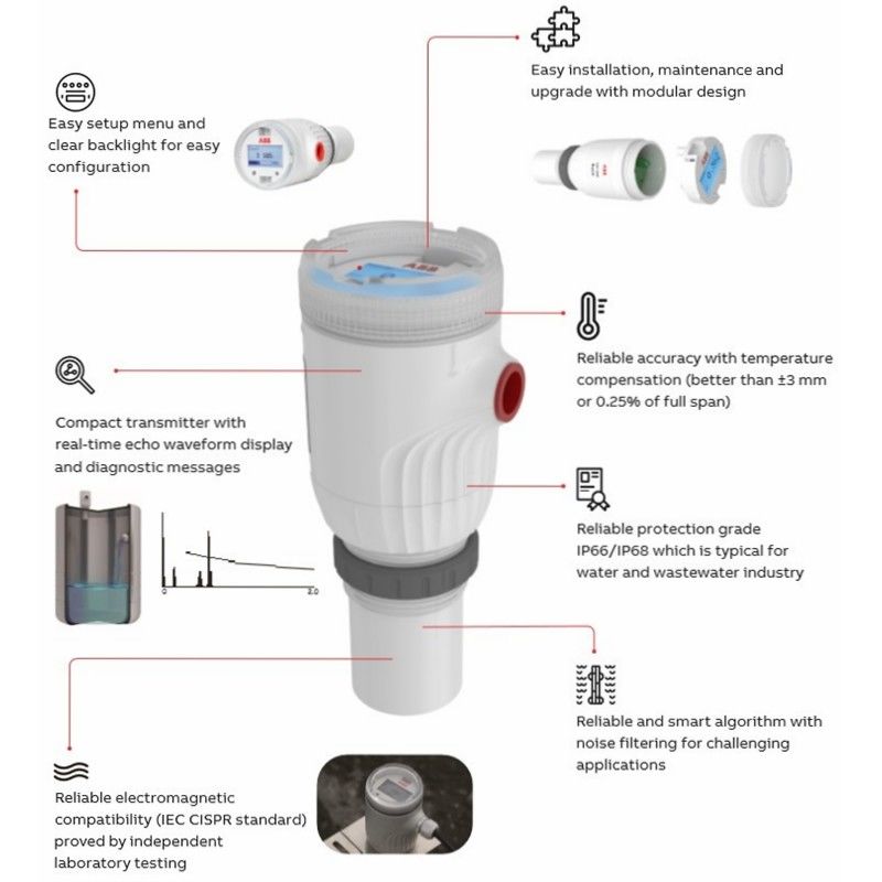 Разработанный совместно с нашими клиентами и опираясь на обширный опыт АББ в области измерения уровня, ультразвуковой передатчик уровня LST200 предлагает простой,умное и надежное решение для измерения уровняС модульной конструкцией, LST200 использует новейшие разработки в области цифровых датчиков.включая встроенный интеллектуальный чип и интерфейс для модернизации с будущими современными методами сбора данных, такими как NB-IoT, предлагая все преимущества цифровизации для улучшения измерения и обмена данными.
